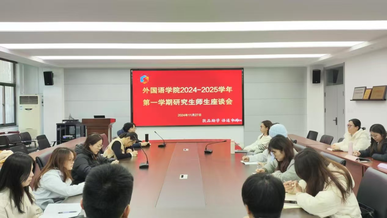 11月27日下午,太阳成集团举办了2024-2025学年第一学期翻译专业硕士研究生期中教学检查座谈会。副院长高秀雪、MTI教育中心主任姚雪丽、2023级和2024级全体硕士研究生参加了座谈。会议由高秀雪主持。