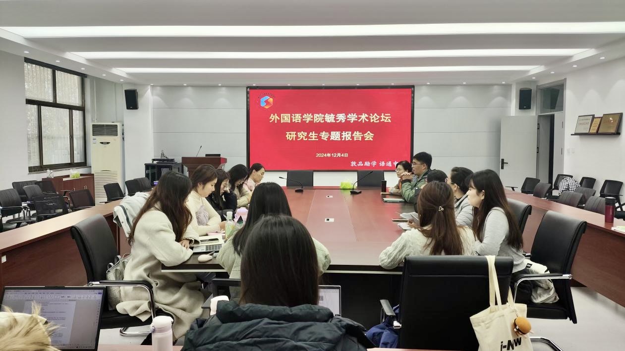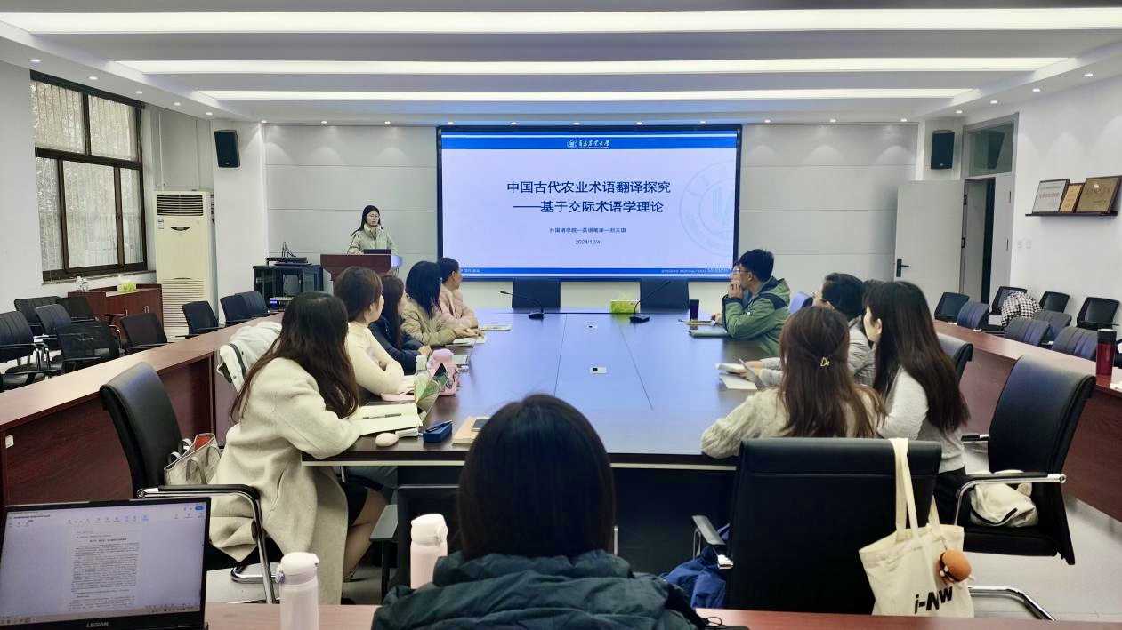 12月4日下午,太阳成集团在文经楼C220会议室举办毓秀学术论坛研究生专题报告会。会议由MTI教育中心主任姚雪丽主持,学院研究生导师参会并点评指导,2023级、2024级研究生与会学习。