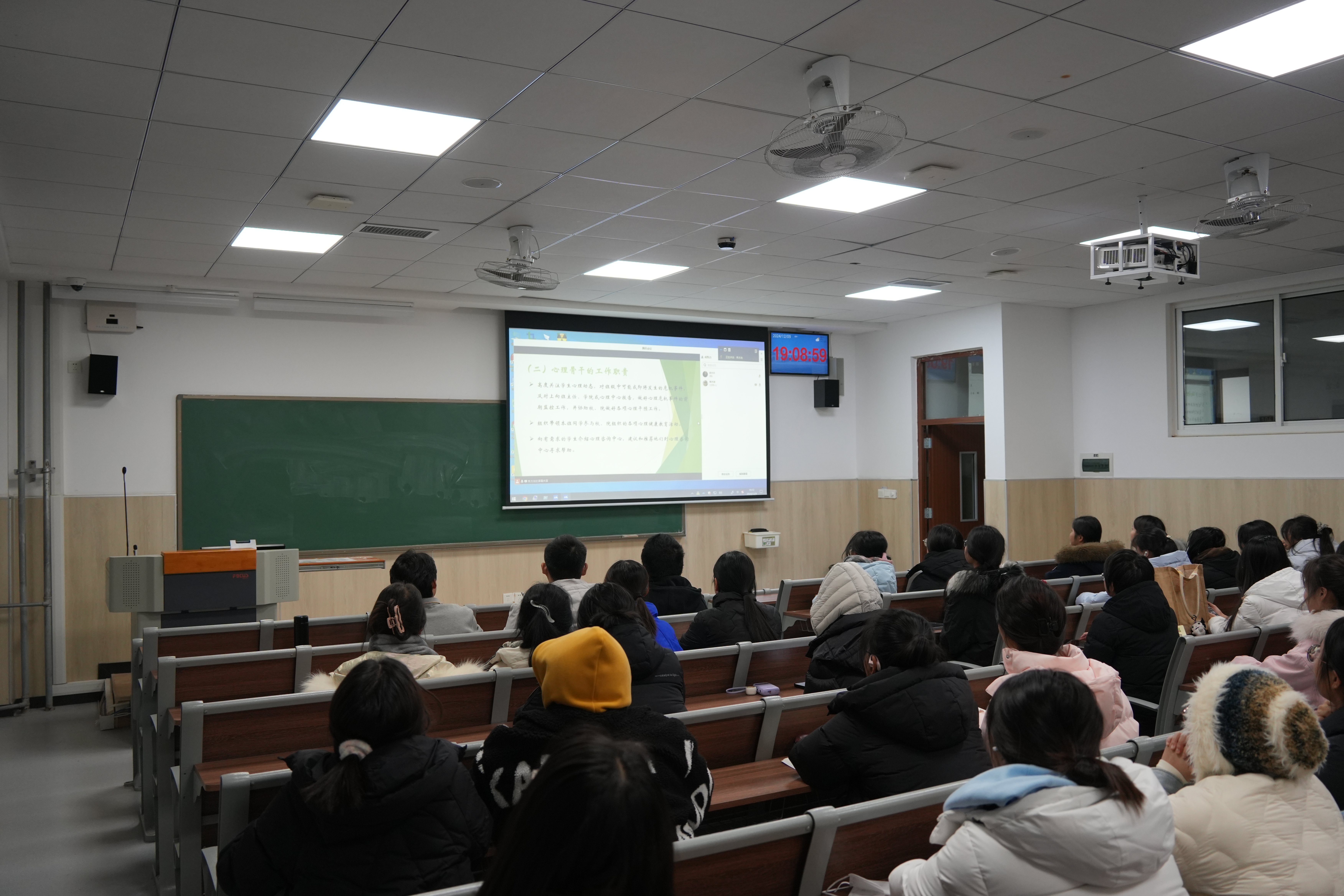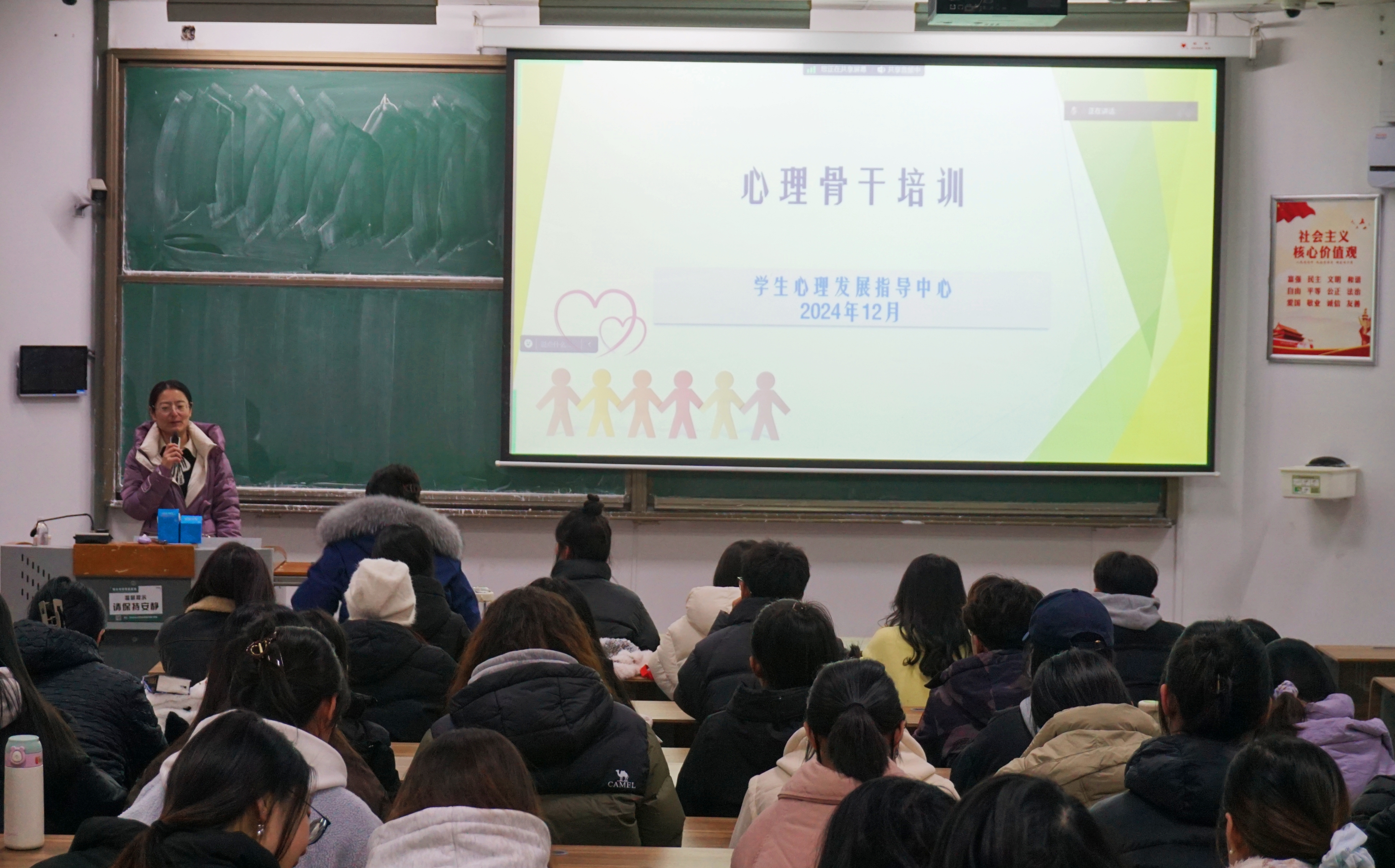 为进一步加强学院心理健康工作开展,提升心理骨干工作能力与水平,更好协助校、院做好各项心理干预工作。2024年12月9日,太阳成集团于城阳校区教学楼B103、平度校区D105开展了心理骨干队伍基本技能培训。本次会议由辅导员仇文峰主持,学校心理发展指导中心专职心理教师李彬主讲,学院全体心理委员和宿舍信息员参与。