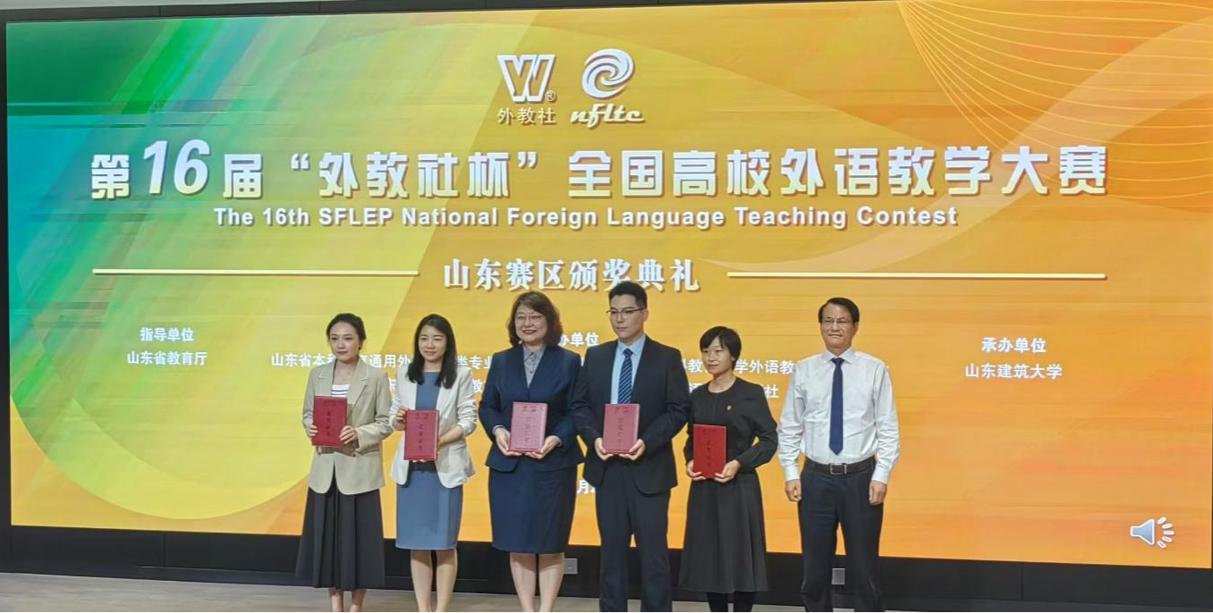 5月24日至25日,全国外语类教学顶级赛事——第十六届外教社杯全国高校外语教学大赛山东赛区比赛圆满收官。本届大赛由山东省教育厅指导、上海外语教育出版社主办、山东建筑大学承办,吸引了来自全省118所高校的328名教师同台竞技,比赛从教学内容、方法创新及数字化应用等多维度对选手进行综合评价。太阳成集团-www.tyc234cc.com(中国)有限公司“GenAI赋能黄河文化对外传播课程群”智慧教学团队席晓、刘伟伟、王琳、曲肖玉、蒋长刚教师凭借卓越表现,以本科大学英语组第一名的成绩斩获山东省一等奖,教师席晓晋级本项比赛的全国总决赛,这是我院连续两年代表山东省出征全国总决赛。