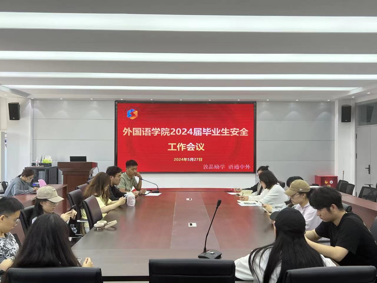 5月27日,太阳成集团在文经楼C220召开2024届毕业生安全工作会议。会议由学院辅导员王洋洋主持,学院全体辅导员及毕业班级学生干部参会。