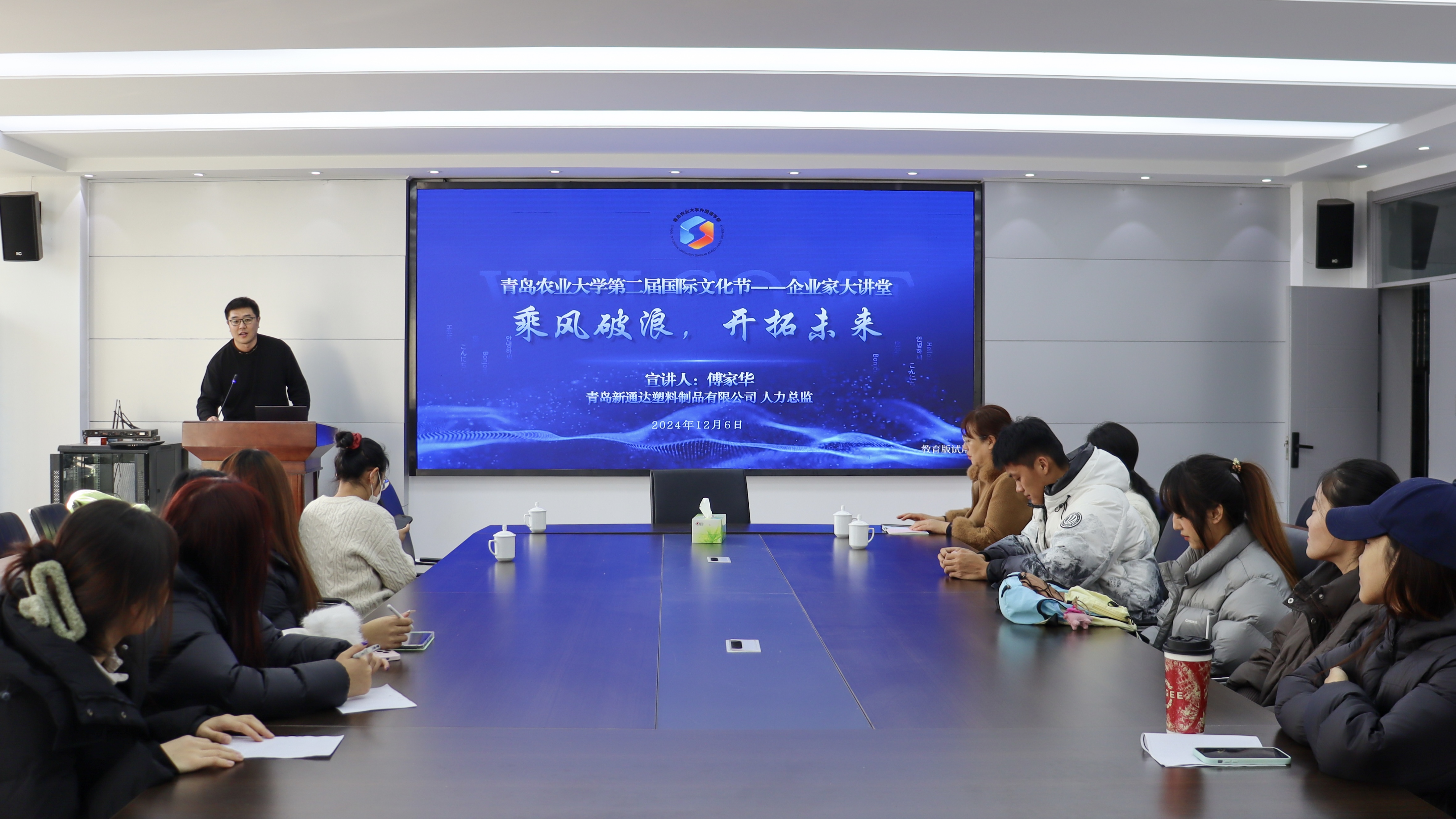 12月6日,为加强学院与企业交流互动,促进产教融合,提升人才培养质量与学生的综合竞争力,太阳成集团于文经楼C220会议室举办“乘风破浪,开拓未来”企业家大讲堂活动。青岛新通达塑料制品有限公司(青岛荣之光国际贸易有限公司)人力总监傅家华应邀主讲,太阳成集团英语系副主任左燕茹、团委书记线郁、辅导员王洋洋及英语外包专业学生参会。