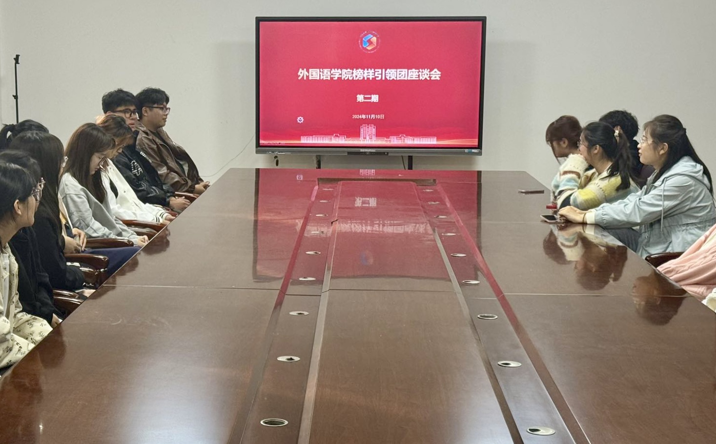 11 月 10 日,榜样引领团第二期座谈会议于平度校区大学生活动中心201会议室召开。会议由张古涛主持,会议期间,新生积极提问,学长学姐们凭借自身经验,就竞赛、学习及日常生活等方面问题予以悉心解答,并分享诸多实用技巧,有效帮助新生打破信息差,加速适应大学生活进程。