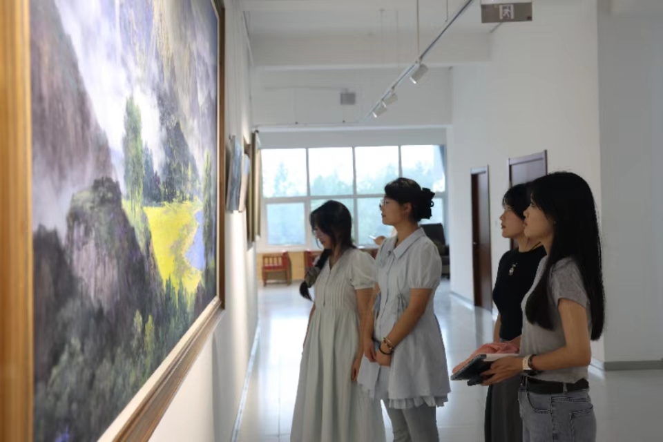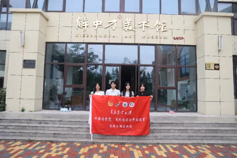 活动的首站是康大田园大棚。在这里,现代农业的科技成果与绿色生态理念完美融合,队员们感受现代农业魅力。之后,实践服务团参观了达尼村这个“画家村”风景如画的十里油画长廊。长廊的每一面墙壁都化身为画布,每一幅油画都是对乡村生活的深情描绘。最后,实践服务团探访解中才美术馆,了解了这些作品的创作背景和艺术价值,同时也对乡村文化的多样性和艺术表现形式的丰富性有了更加深刻的认识。队员们纷纷发挥自己的专业特色,制作集中文、英语和日语为一体的多语视频进行外宣,努力讲好中国故事、传播好中国声音,展现可信、可爱、可敬的中国形象。