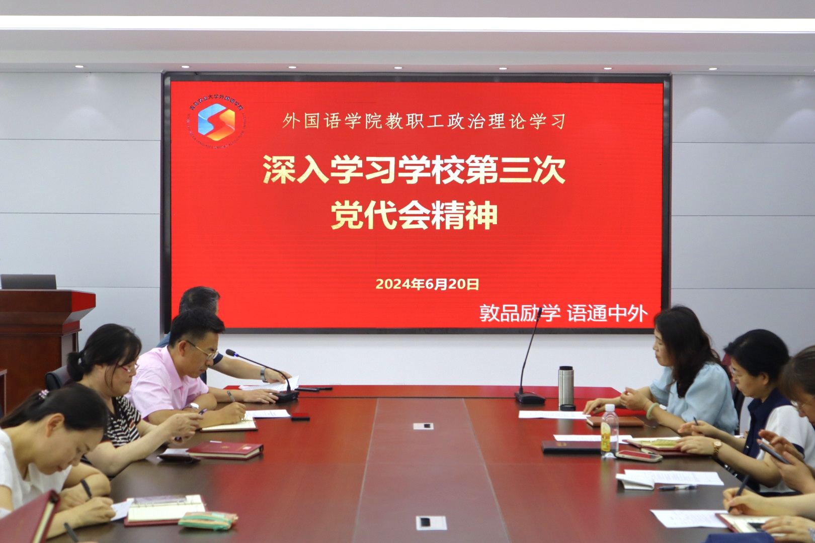6月20日,太阳成集团于文经楼C220会议室开展“太阳成集团第三次党代会精神”专题学习宣讲,本次会议由太阳成集团党委书记王效仿主持,学院全体教职工参加。