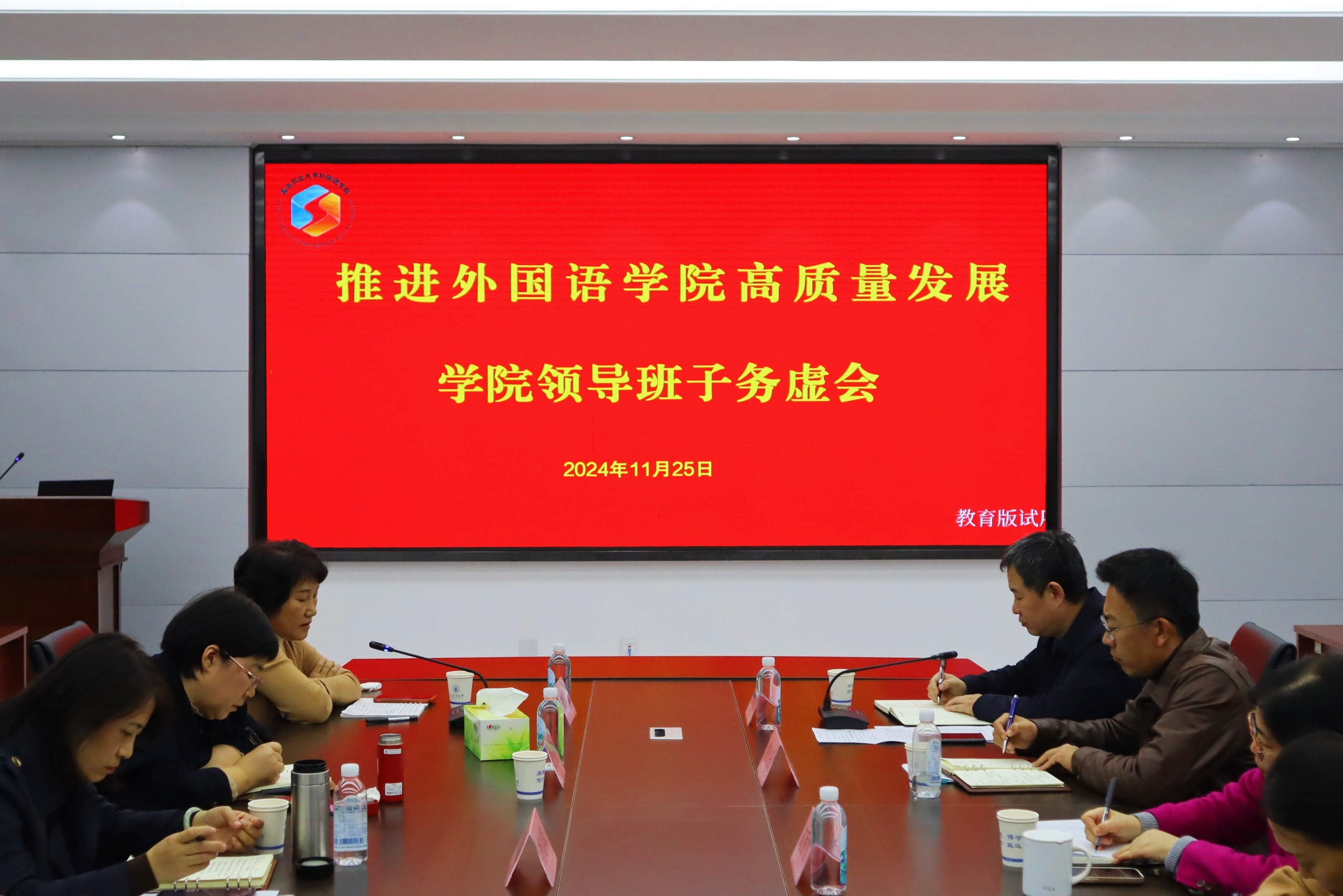 院长纪卫宁作了题为《强优势,突特色,推动太阳成集团高质量发展》的交流发言,她结合学院“十四五”规划的完成情况,指出了当前存在的问题和挑战,并从学院发展定位、教学优势、学科特色、人才培养等四个方面提出了切实可行的工作思路和举措。她指出应以学校第三次党代会精神为指引,聚焦1186 战略,紧紧围绕“培养具有国际视野和中国情怀的高素质复合应用型外语人才”的育人目标,以学科建设为引领 , 以教育教学为中心,以师资建设为关键,以改革创新为动力,以党建和思想政治工作为保障,加强内涵建设,推动学院高质量发展,全力提高学院整体办学水平。
