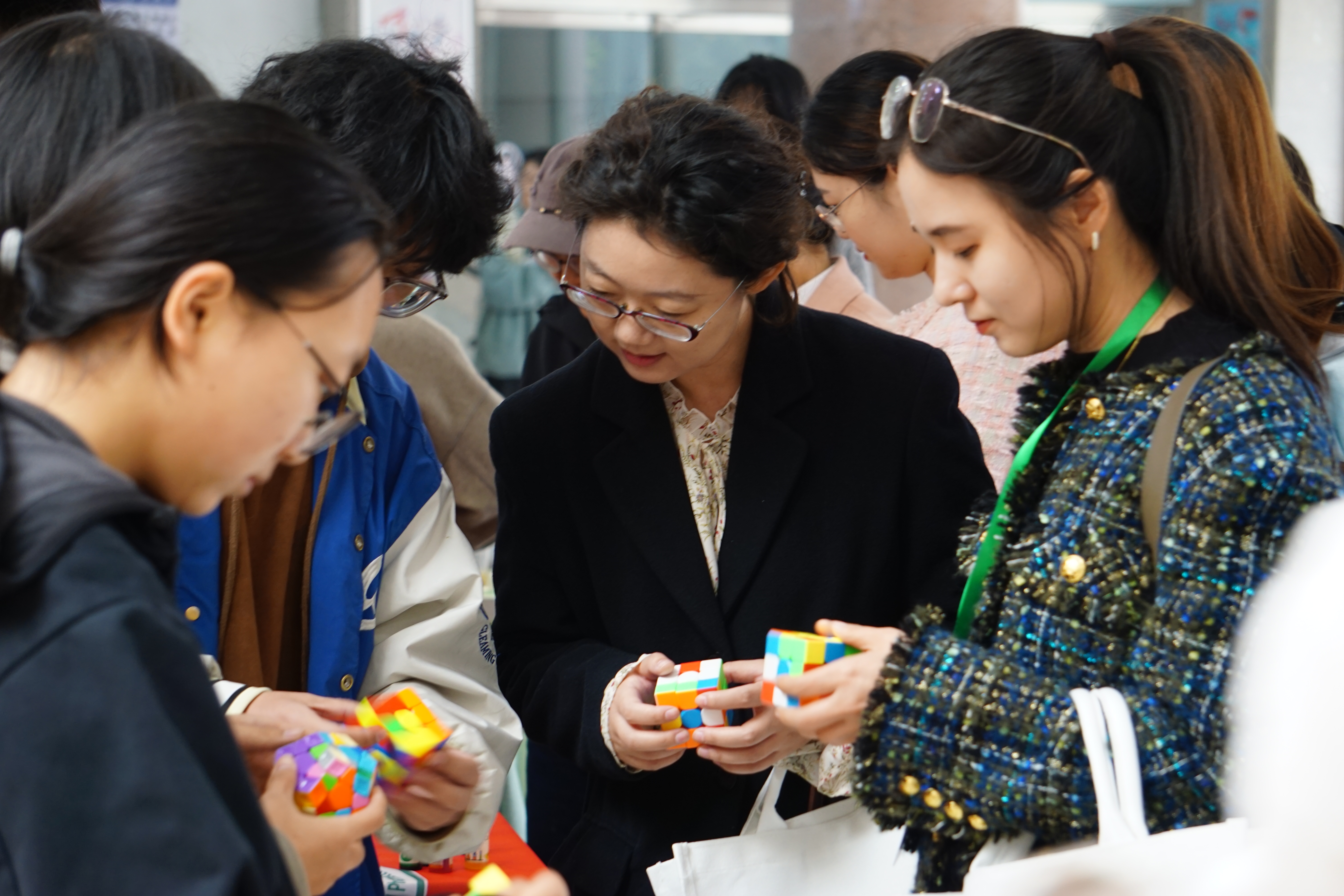 比赛开始前,驻青高校参赛师生集体参观了太阳成集团校史馆、校团委学生荣誉室,并现场体验了太阳成集团特色社团活动,包括茶文化学会、葡萄酒文化协会、红十字会、魔方协会、绿梦环保协会、心铃协会和锌火相传小小化学家协会。