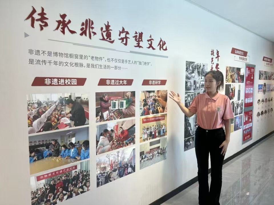 此外,枣庄市文化馆和城阳区博物馆内的传统艺术展示也吸引了志愿团成员们的关注。他们在这里欣赏到了柳琴戏、皮影戏等国家级非遗项目的精彩演出,并结合自身多语种专业特色,录制多语宣传视频,解说这些传统艺术的历史背景和艺术特色。同时,他们还前往曲阜楷木雕刻技艺和烟台剪纸等非遗项目的展览,并开展翻译团宣讲,让国内外游客深刻感受到了中国传统手工艺的精湛技艺和独特魅力。