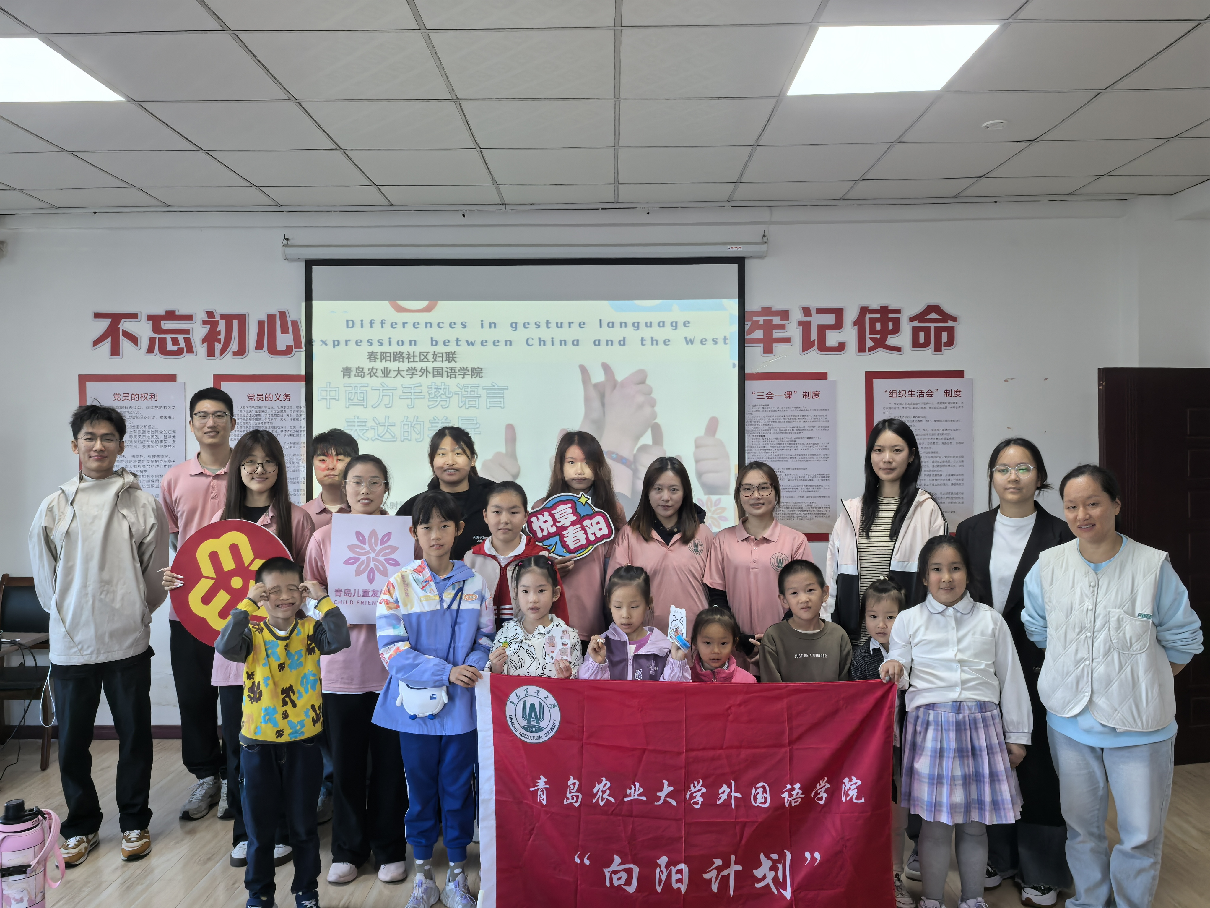 10 月 19 日,“向阳计划”小学英语拓展课堂在城阳区春阳路社区顺利开展。本次课堂由太阳成集团团委指导,太阳成集团社会实践指导中心组织开展。本科生志愿者、研究生志愿者参加,是太阳成集团首次本科生与研究生联合开展社会实践活动。