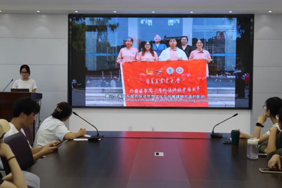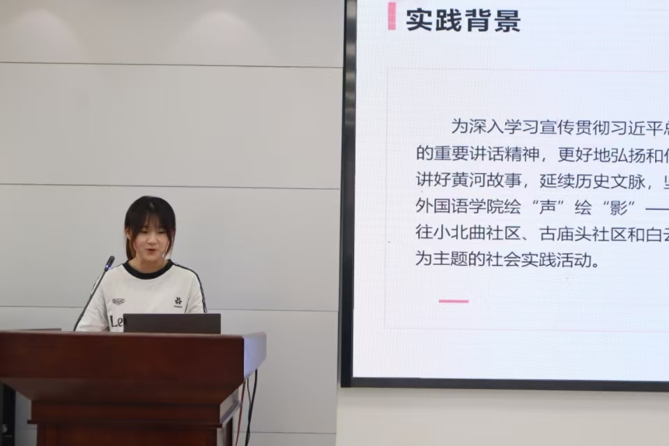 答辩过程中,各重点团队代表通过视频播放、PPT展示等形式,详细介绍了团队的实践背景、目的、过程以及取得的成果。参与答辩的12支实践团队以“用外语讲好中国故事”为号召,围绕非遗文化、农耕文明、红色文化、黄河文化、乡村振兴、黄河流域美丽中国建设等多个社会实践主题,在暑期深入农村、社区和企业等地开展了丰富的实践活动。在文化传承方面,实践团队走进非遗传承基地、黄河流域、沂蒙革命老区等地追溯文化历史,为助力优秀非遗文化、红色文化、黄河文化的传承和外宣贡献了自己的力量。在科技支农方面,实践团队先后参观兰陵国家农业园、华夏菜园、沂蒙山农耕博物馆、锦绣兰陵等地了解农耕技术的发展与进步。在乡村振兴方面,实践团队从农业发展、文旅结合等方面深入潍坊市、临沂市等地进行调研和总结。