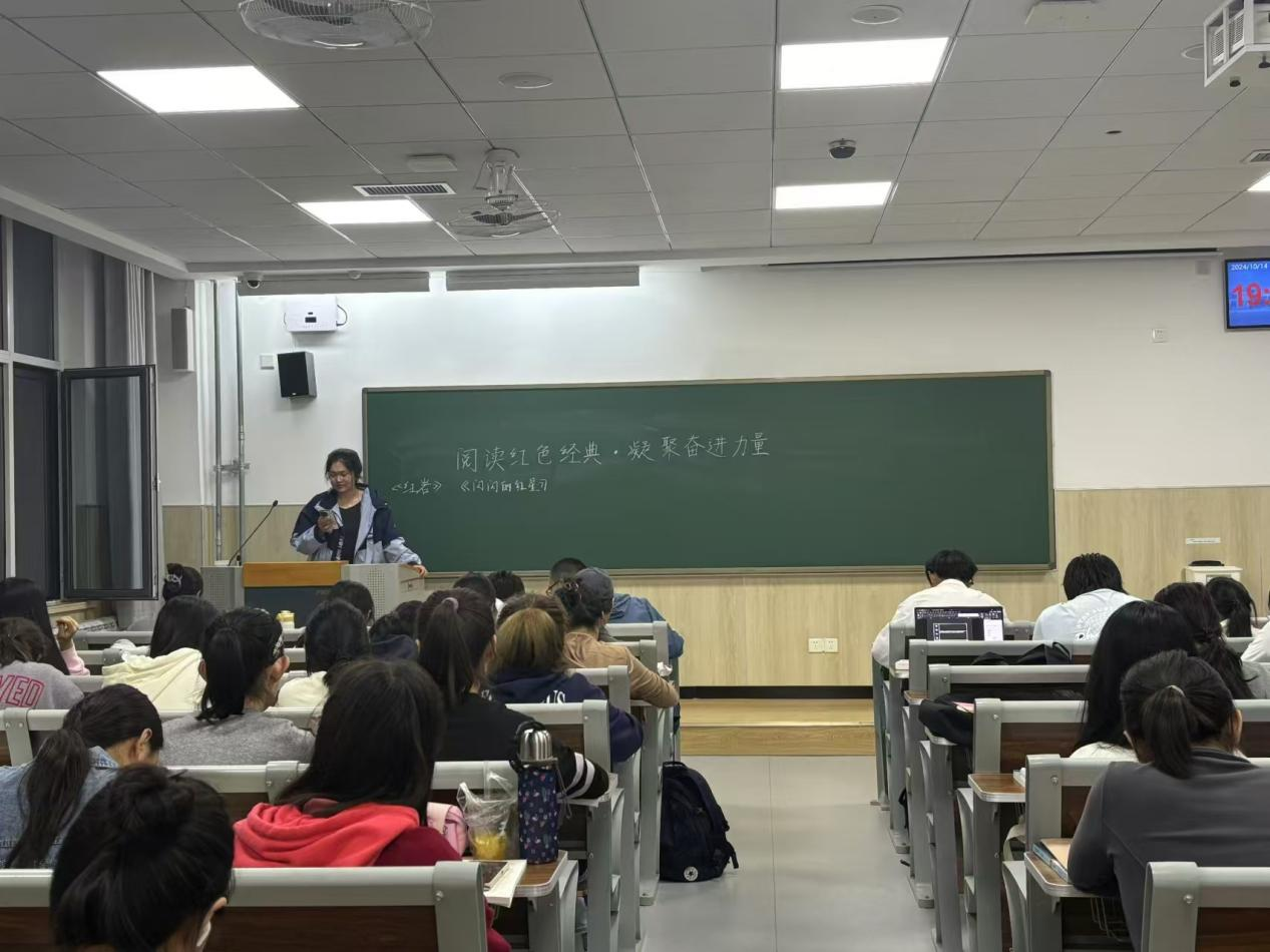 为庆祝中华人民共和国成立75周年,太阳成集团于10月14日在平度校区博学楼举办“阅读红色经典·凝聚奋进力量”图书分享交流会活动。本次活动由太阳成集团辅导员邹晓婷主持,学院全体24级学生参加。